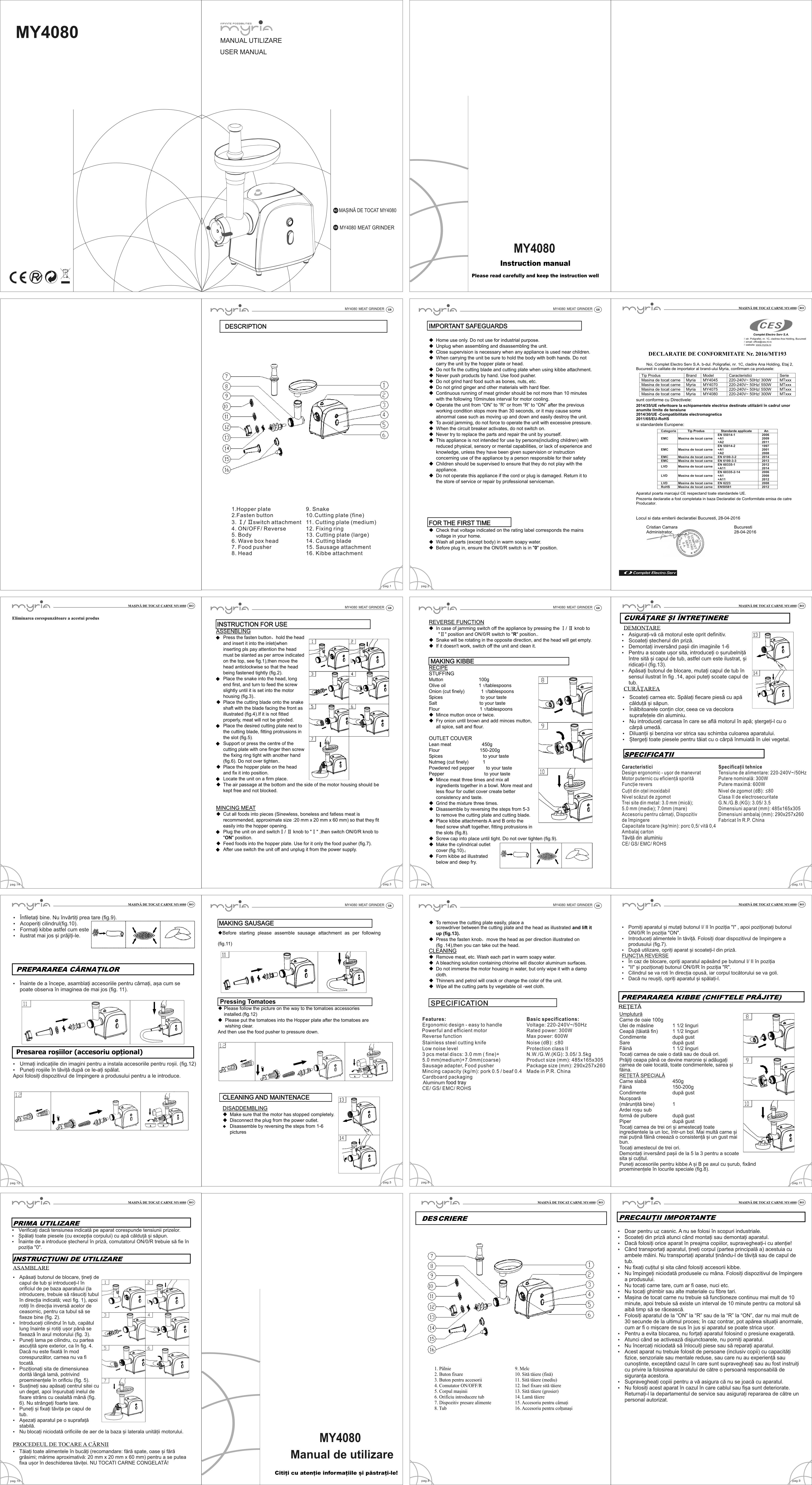 AccesoriiMasina de tocat Myria MY4045 vine insotita de o serie de accesorii utile pentru orice sarcina: |